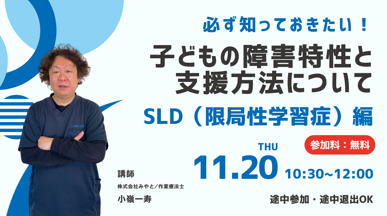 11/20 必ず知っておきたい!子どもの障害特性と支援方法ついて~SLD(限局性学習症)編~